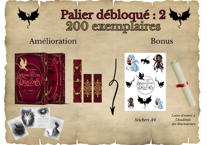 Du 1er mars au 5 avril, participez à l'éclosion d'un projet unique. Soyez parmi les premiers à découvrir mon nouveau roman de Fantasy dans une version façonnée pour les amoureux des beaux livres. Chaque palier franchi entre le 1er mars et le 5 avril améliore la qualité de tous les exemplaires commandés. Plus la communauté des Murmureurs s'agrandit, plus votre livre devient précieux et plus vous recevez de cadeaux. Alors, n'hésitez pas à partager !